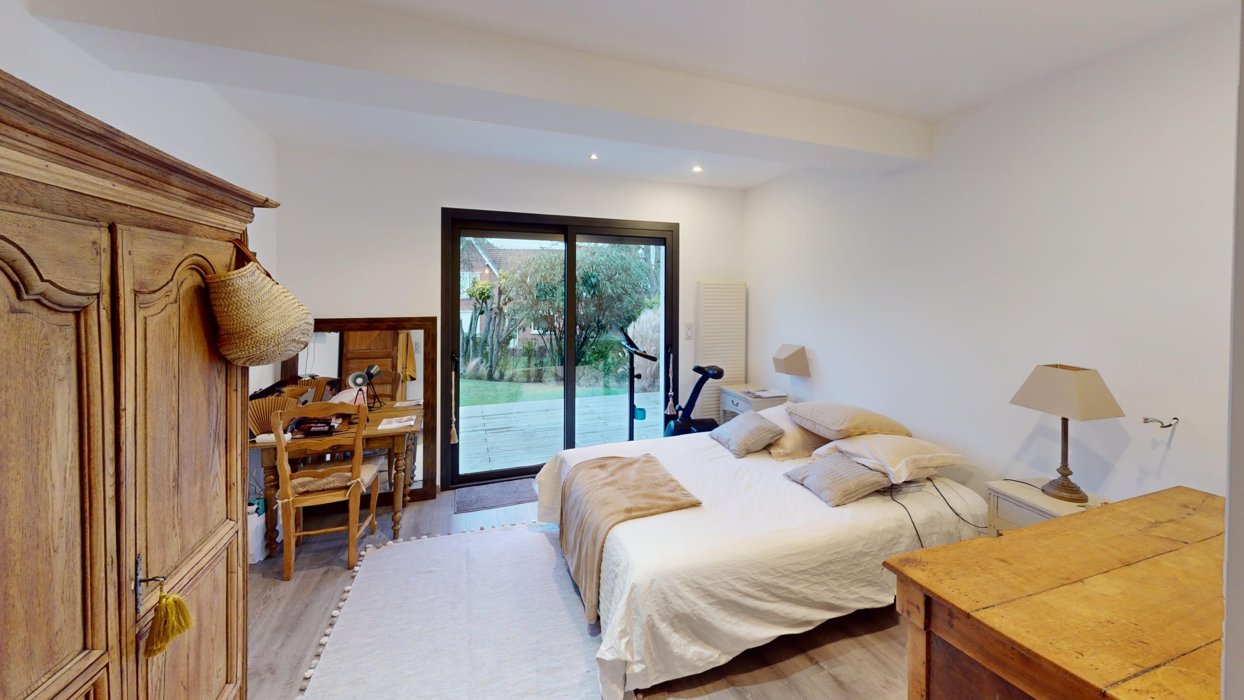 Côté nuit, la maison offre 3 grandes chambres, dont une véritable suite parentale avec cuisine, salle d’eau et dressing privatif.