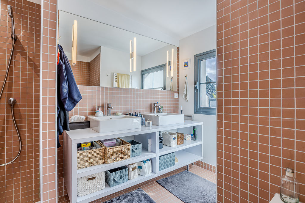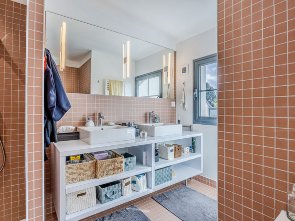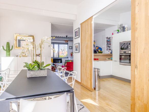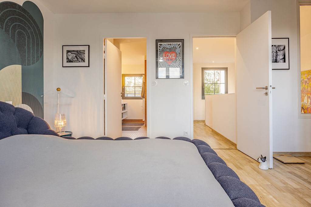 145 m² habitables, un garage de 16 m² intégré à la maison. Au rez-de-chaussée, c’est une buanderie, deux chambres, une salle d’eau avec WC, un cellier. Un patio faisant entrer la lumière naturelle et donnant sur les 2 chambres. Au premier étage la pièce de vie sur plus de 60m² avec coin repas, accès à la terrasse extérieur, une cuisine entièrement aménagée et équipée, un coin bar et un vaste salon, maison traversante Sud – Nord pour profiter du soleil toute la journée. Au second, une master Bedroom avec salle d’eau (douche, baignoire), un WC, un dressing et la chambre (vue sur le Tour PERRET).